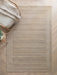 Orlo is crafted with undyed wool, featuring neutral, undyed tones for an organic appeal, elegantly framed with white loops that create a structured border.